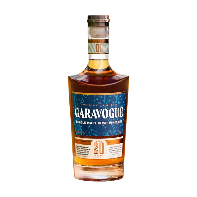Garavogue 20-Year-Old Single Malt Irish Whiskey offers a rare take on traditional Irish Whiskey with both unexpected and familiar flavors due to its unique maturation involving multiple types of casks. Double-distilled and initially aged for a minimum of 14 years in ex-bourbon American oak casks, the whiskey was then transferred into a variety of unique finishing casks including French Muscat, French Sauternes, Spanish Pedro Ximénez Sherry and Barbadian Rum casks for further maturation.
