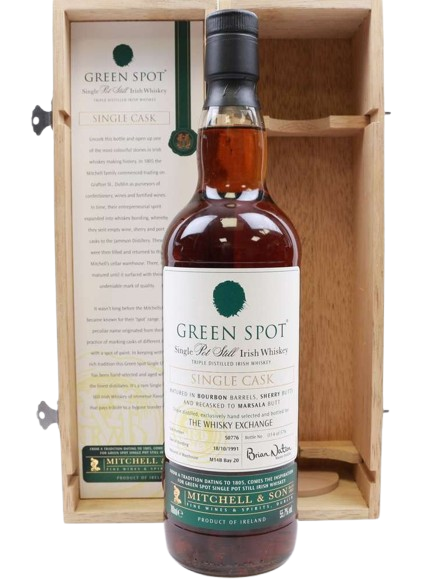 Specially selected by The Whisky Exchange, this single-cask shows why they love Green Spot. Bonded on 27 February 2006 and matured in a single first-fill Bourbon cask, it's zingy, fruity and packed with rich pot-still character. Only 192 bottles were produced so it is a much sought after bottle. 59% abv