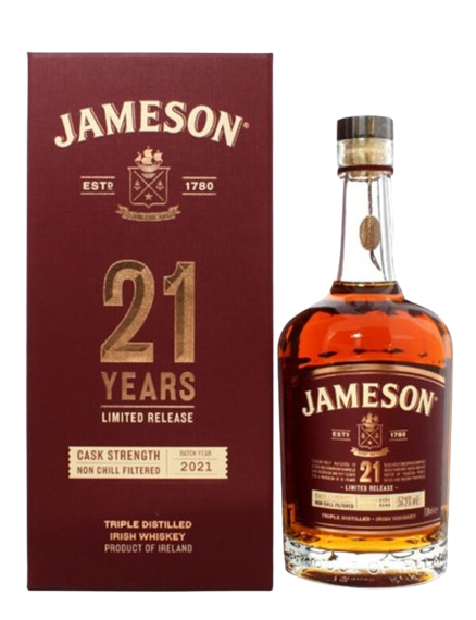 Taking its place at the head of the family, Jameson 21 year old is a blend of rare pot still and single grain Irish whiskeys that were initially matured in a range of ex-bourbon and oloroso sherry seasoned casks at the Midleton Distillery for 18 years. Following on from that initial period of maturation, these whiskeys were then blended and re-casked into freshly emptied ex-bourbon barrels for an additional three years.