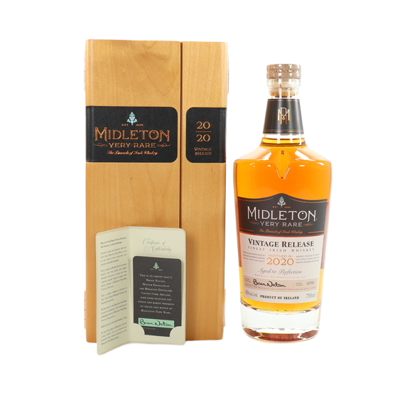 Chosen from the most outstanding quality single pot still and single grain Irish whiskeys laid down over the past four decades in Midleton, Co Cork, Midleton Very Rare 2020 showcases an expression of whiskeys aged from 13 to 35 years in lightly charred ex-bourbon American oak barrels.