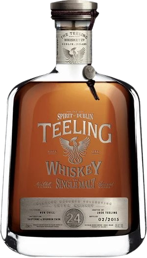 The Teeling 24 Year Old Single Malt Irish Whiskey was first distilled in 1991 and matured in Bourbon casks then allowed marry in Sauternes wine casks producing a wholly unique taste experience. The unique dual maturation imparts an extra depth of fruit flavours that perfectly complement the hint of smoke derived from the inclusion of a small portion of Peated malt as part of the original ingredients used in production. This small batch bottling, limited to just 5,000 70cl bottles, were hand bottled in unique decanter bottles and come with their own certificate of authenticity. Recently awarded the title of World’s Best Irish Single Malt, this is a whiskey to be savoured.